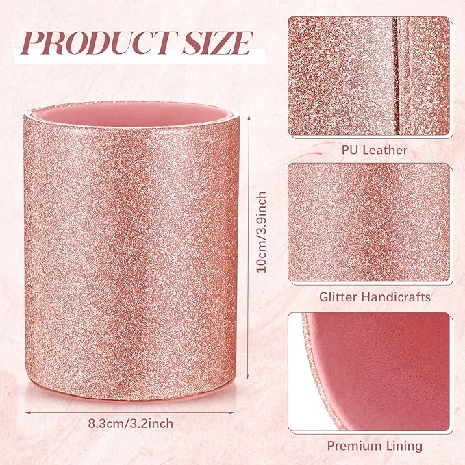 - Office Accessories Set: the package contains 1 piece of bling rose gold pen holder for desk PU leather and 8 pieces of rose gold pens in 4 designs, 2 pieces for each design, put them together on your desk to make your desk look stylish and attractive