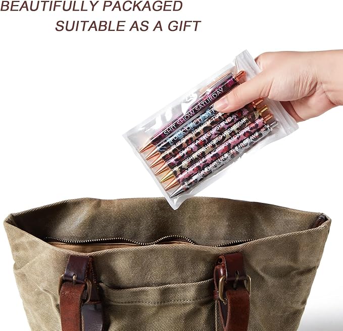 7pcs Leopard Pens Ballpoint Pens, Spoof Fun Ballpoint Pen Set,Black Ink Novelty Metal Pens Swear Word Daily Pen Set