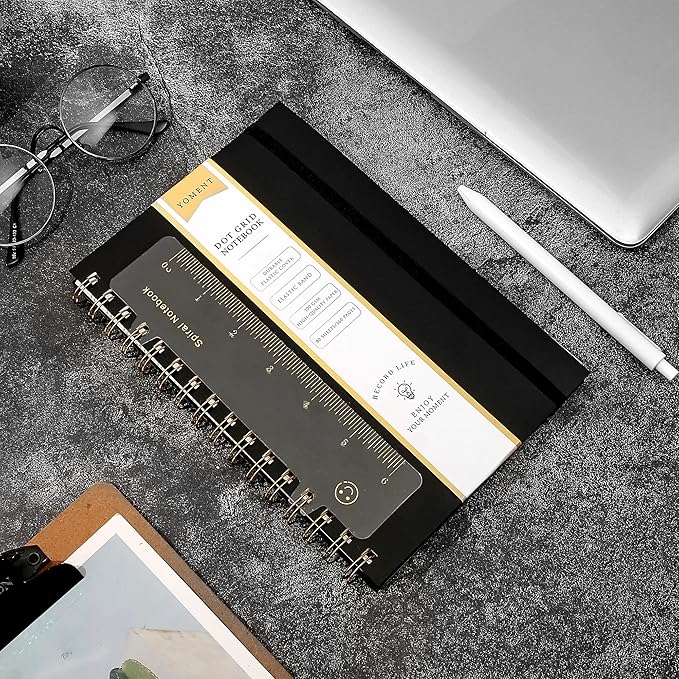 - Removable Ruler and Pocket--The bullet dotted journal has many useful features,Elastic band keep the cover from opening, saving space when you put it in your bag.Internal pockets store small cards and important note-taking notes.Removable ruler can help you measure and chart.
