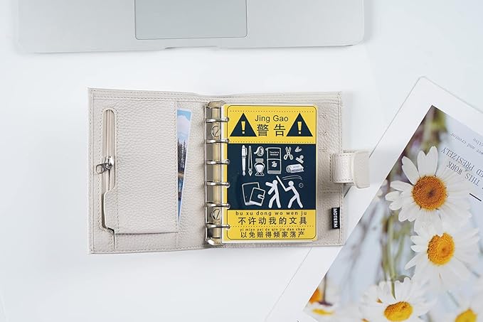 Moterm Pocket Regular Rings Planner - Genuine Leather Binder Organizer (Pebbled-Cream, 19mm Ring)