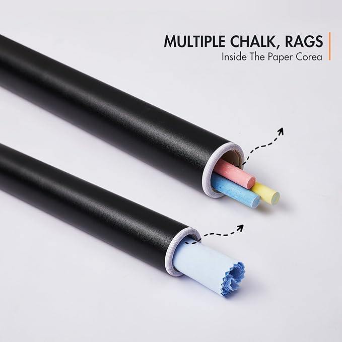 Chalkboard Wallpaper Stick and Peel: Contact Paper Classroom Chalkboard Stickers Chalk Board Paint Self Adhesive Wall Paper with 8 Colorful Chalks(17.5" x 393.7")