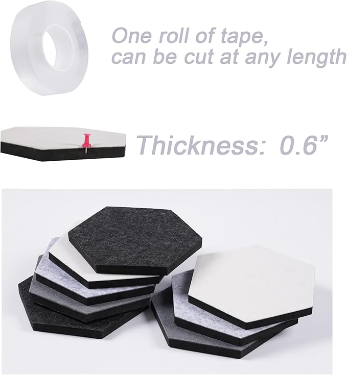 - 1. Size and Material - The size of the bulletin board is 7.0 × 6.1 inches. Each hexagon board is 0.6 inches thick, The pin won’t poke through the board. The surface of the felt board is covered with felt and the back is made of EVA, sturdy and lightweight.