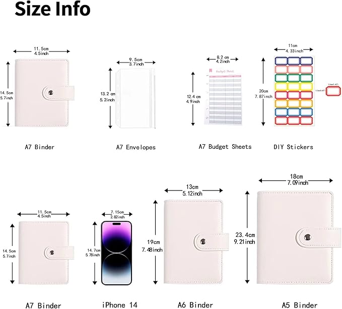 - 【What Will You Get?】One pocket size binder cover, 8 x cash zipper envelopes, 12 x budget sheets, 24 x self-adhesive labels. All parts are customized for A7 binder.