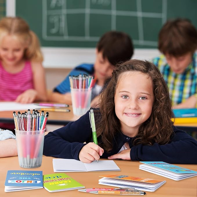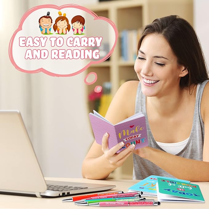 - Motivational Gift Set: the package comes with 32 pieces of inspirational gifts, including 16 pieces of inspirational pens in 8 colorful colors and 16 pieces of inspirational mini notebooks in 8 different styles, enough amount can meet your various needs