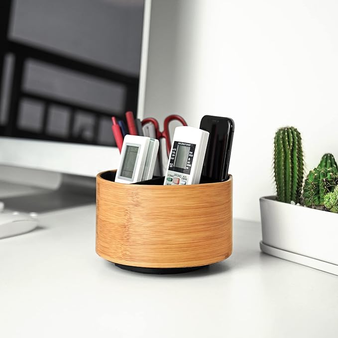 - ✎360° Revolving Design: You can freely rotate the pen holder steadily left and right,unique spinning base design allows easy access to items from any directions.The non-slip pads on the bottom keep it stay in place when rotating.