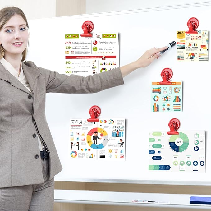 • 【Strong Magnetism】Magnet clips heavy duty can hold over 25 sheets of A4 paper on a metal surface without sliding.