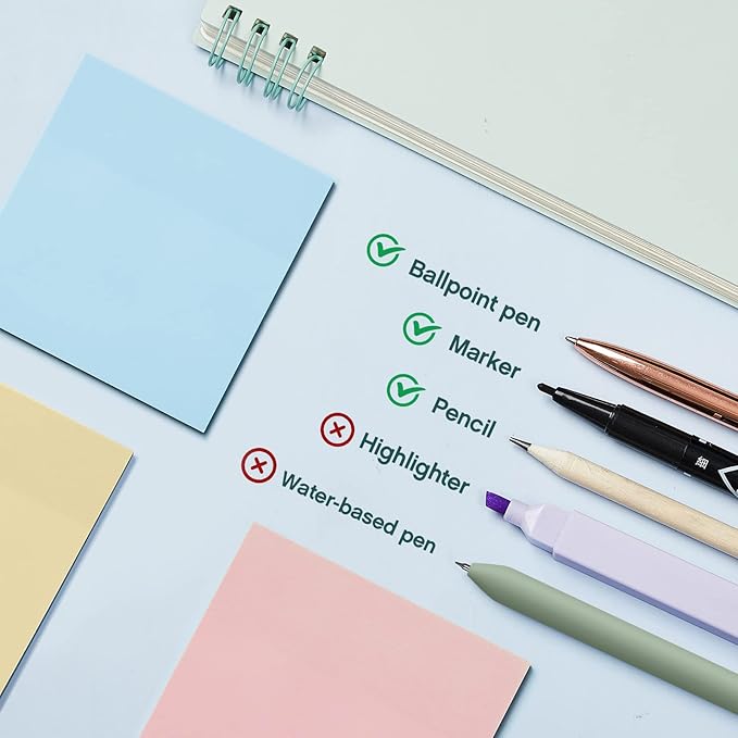 - Smooth Writing Experience: made of quality plastic body, aesthetic pens and highlighters ensures the long period use, not easy to deform or break, comfortable to hold, black ink is quick to dry, providing a fluent writing experience;The black marker is not easy to be erased when writing on the transparent sticky note, which is convenient for you to use