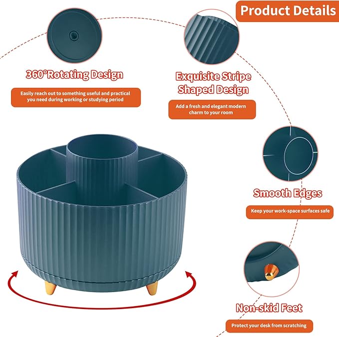 - [Modern Aesthetic Design]: A classic style gives this spinning organizer a versatile look, and striped has a sleek sophisticated design that will give your office or home décor such a classy touch. High-quality ABS makes it reliable and long-lasting, while a warm cute color adds a touch of charm.