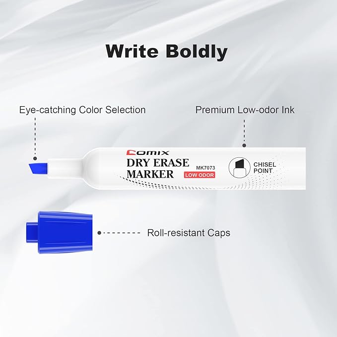 - Low-odor & Non-toxic: Comix dry erase markers are smear-proof, non-toxic, water-based and are made to low-odor, which is safe for use. Comforms to ASTM D-4236