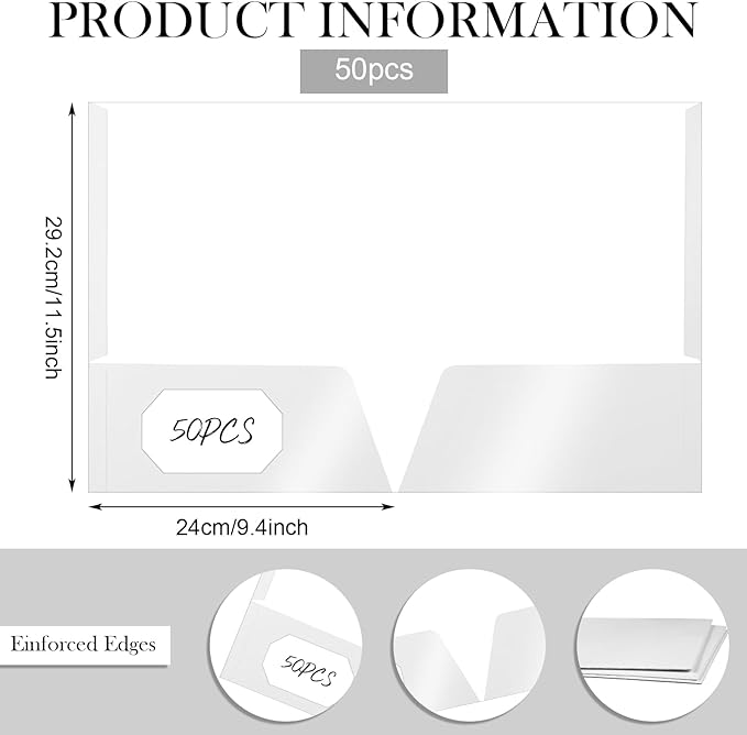 - Product and Size Information: you will get 50 pieces of folders with pockets with tabs; They measure about 11.5 x 9.4 inches/ 29.2 x 24 cm; 2 interior flat pockets that hold 50 sheets each; The pockets on both sides of the folder have multiple engraved lines for inserting cards, notes or schedules; Enough quantity in the package can meet your daily using and sharing needs