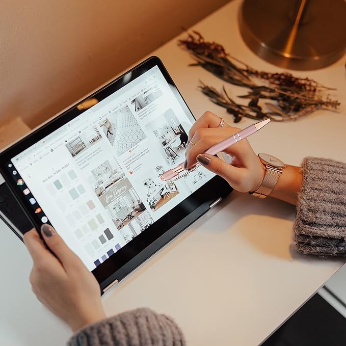 LINFANC 12 Pack Rose Gold Ballpoint Pen with Stylus Tip, 1.0 mm Black Ink Smooth Writing Pens, Metal Stylus Pens for Touch Screens