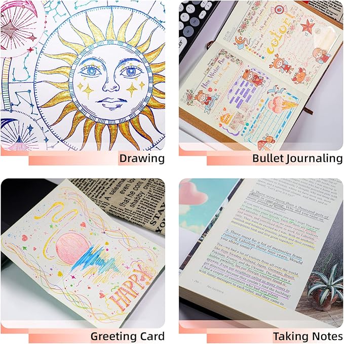 - Unique Glitter Ink: Smooth writing, No bleed through, Thicker ink rods. These nice multicolor pens provide you a pleasant drawing experience.