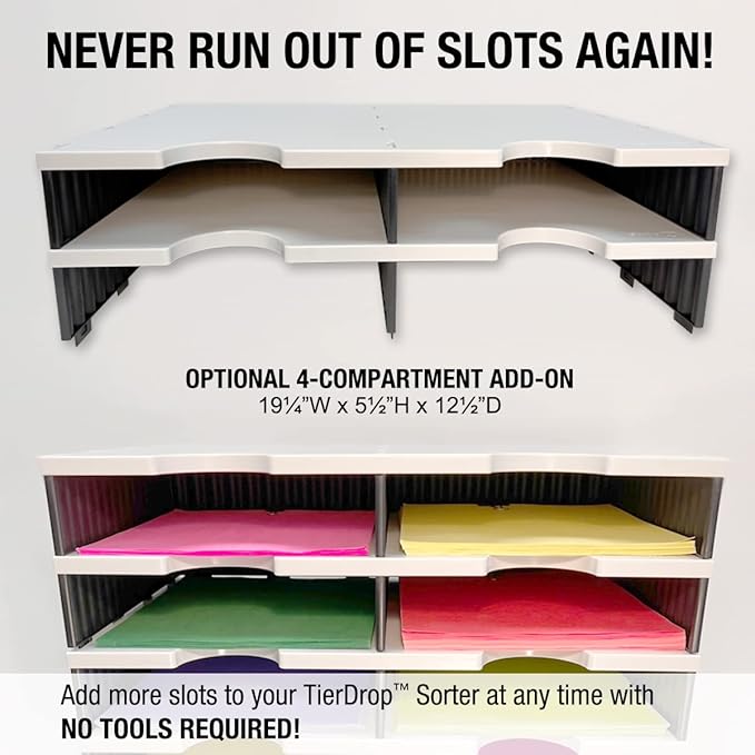 - THE STRENGTH OF STEEL AT A FRACTION OF THE COST - Each TierDrop platform is precision-molded with high-impact polystyrene and features underside reinforcement fins for extra strength and superior rigidity. The unique rippled side and back wall design combine with the platforms to create a literature sorter that will stand the test of time.