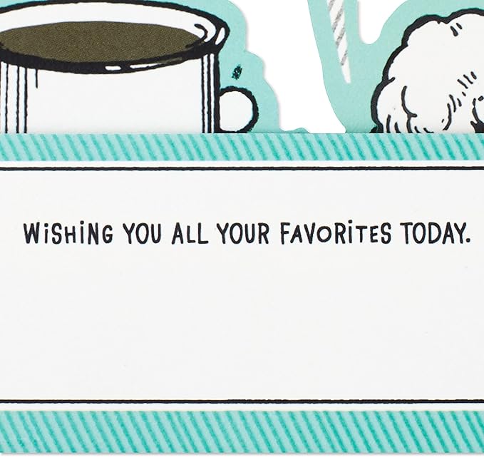 - Back of card reads: "Wishing you all your favorites today," and includes space for a brief message.