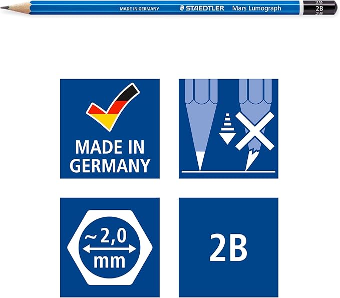 STAEDTLER Mars Lumograph 2B Graphite Art Drawing Pencil, 6 Pencils
