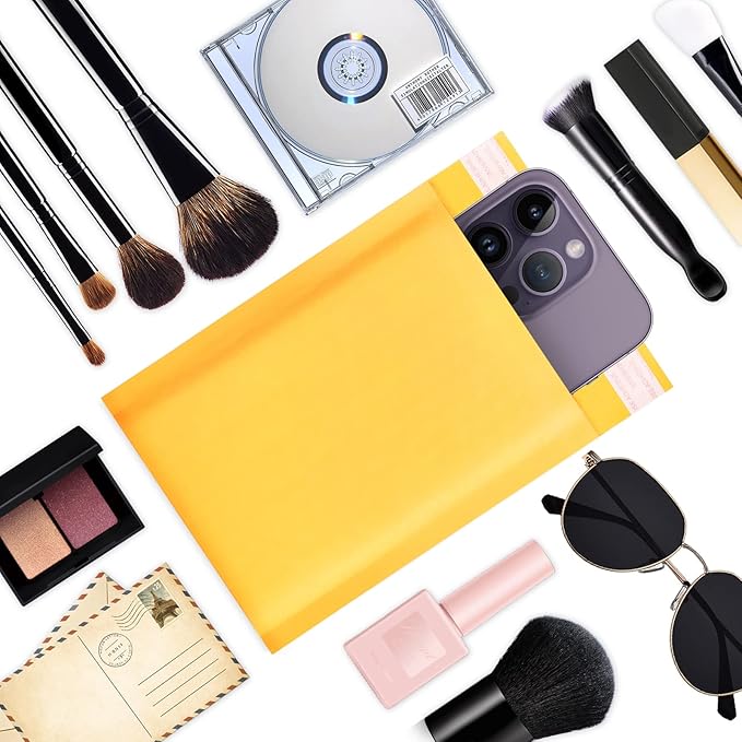 DaSen Kraft bubble mailers 4x7 Inch 50 Pack,Self-Sealing Paper Envelopes for Packaging,Strong Adhesion Envelope Mailers, Small Waterproof Cushioned Padded Shipping Bags Yellow #000