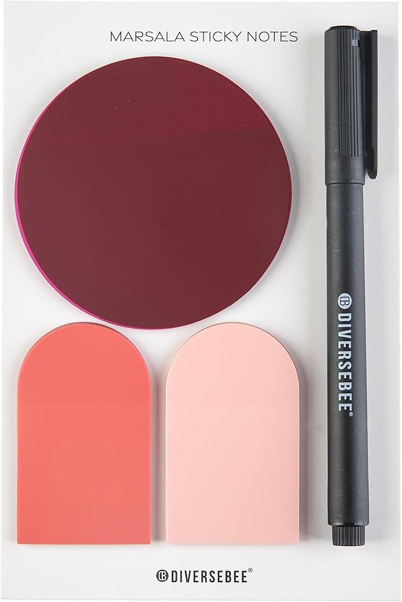 DiverseBee Transparent Sticky Notes (Includes Quick Dry Pen), Cute Clear Sticky Tabs, Translucent Page Flags Book Markers Stickers, Planner Accessories Bible Journaling Study Office Supplies (Marsala)