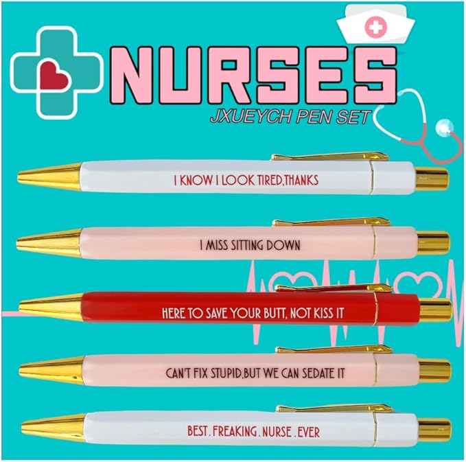 - ๐ฎ๐ฐ๐ญ๐ป: Searching for the perfect gift that truly captures the essence of a nurse's dedication and sense of humor? Look no further than this 5-count set of Jxueych Funny Pens. Each pen is carefully crafted with love and thoughtfulness, making it an ideal present for birthdays, graduations, or just to show appreciation to the nurses in your life. Give them a gift that not only makes them laugh but also brings joy and positivity into their stressful work environment.