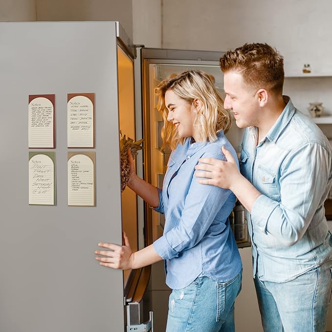 - Set of 4 Note Pads - Perfect Size: Each 7.4x3.7 IN magnetic notepad is large enough to make everyday stuff easier without taking up too much space on your fridge! Enjoy ample space with each grocery list notepad providing 50 easy-to-tear-off sheets