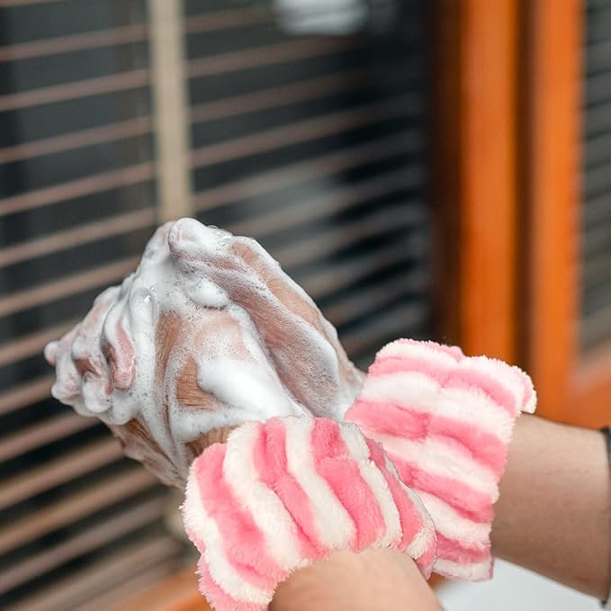 - Practical features: These wristbands are soft and comfortable enough, the fluffy material absorbs water easily, helping to prevent water from running down your arms when washing your face, making them a must-have for skincare lovers