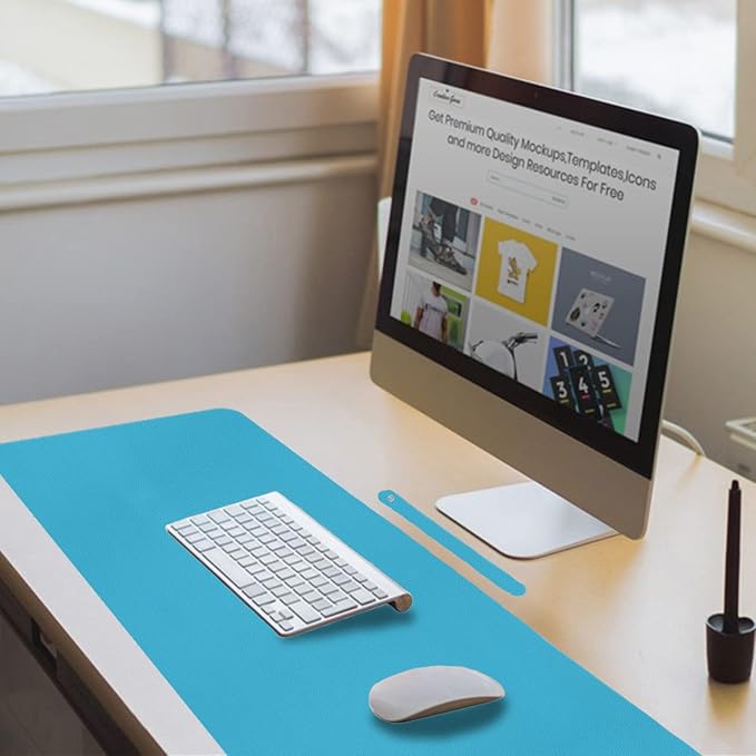 Boutilon Leather Desk Pad 24"x 14" Non-Slip Mouse Pad,Office Desk Mat,Waterprooft PU Leather Desk Blotter,Desk Pad Protector,Desk Writing Pad for Home Office Decor (S-Blue)