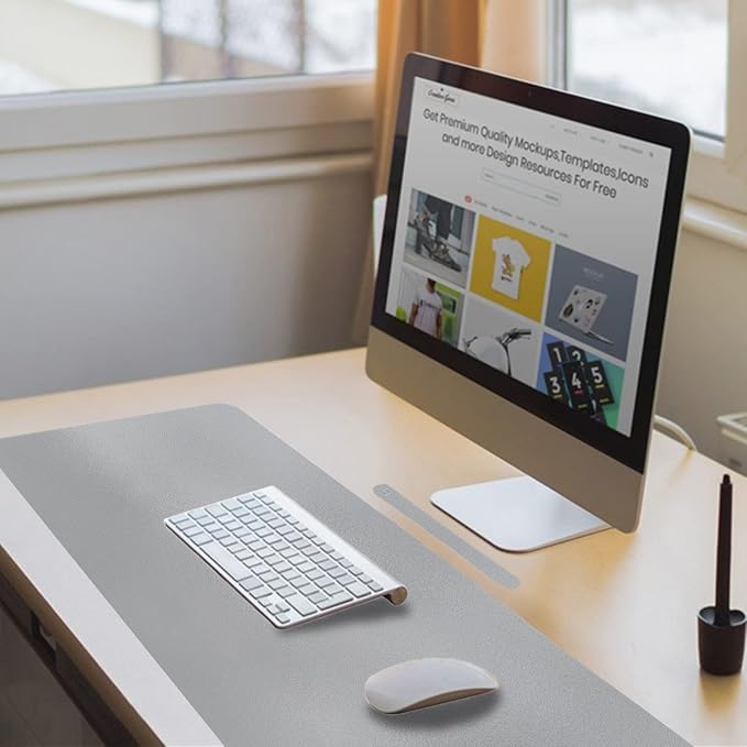 Boutilon Leather Desk Pad 24"x 14" Non-Slip Mouse Pad,Office Desk Mat,Waterprooft PU Leather Desk Blotter,Desk Pad Protector,Desk Writing Pad for Home Office Decor (S-Silver)