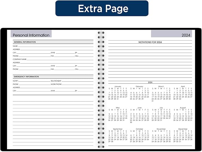- SPECIAL FEATURES - Expand your organizational skills with special pages. Includes: reference calendars, contacts and personal information.