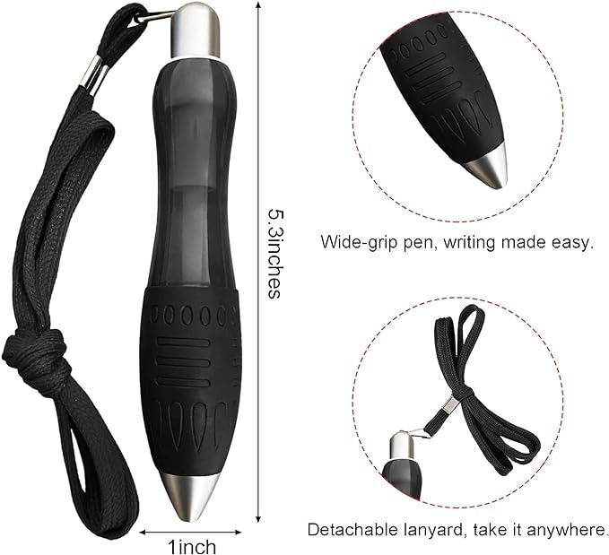 - 【Size and shape】: With a length of 5.2 inches and a grip diameter of 1 inch, this pen is easier to hold and is particularly suitable for people with conditions such as Tremor, Arthritis, Parkinson, Handicap, Hand Pain, and Carpal Tunnel.