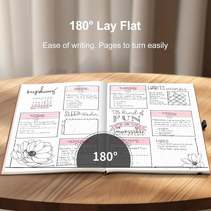 - Faux Leather Soft Cover: The premium sturdy soft cover, which can lay flat at 180°, makes the journal more durable and comfortable to touch. It provides a protective layer for the pages and offers a comfortable writing surface