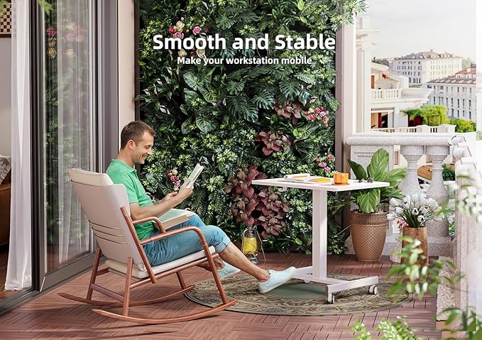 Mobile Standing Desk, Small Rolling Standing Desk, Mobile Desk Workstation with Wheels, Pneumatic Mobile Laptop Desk for Home Office with Hook, White