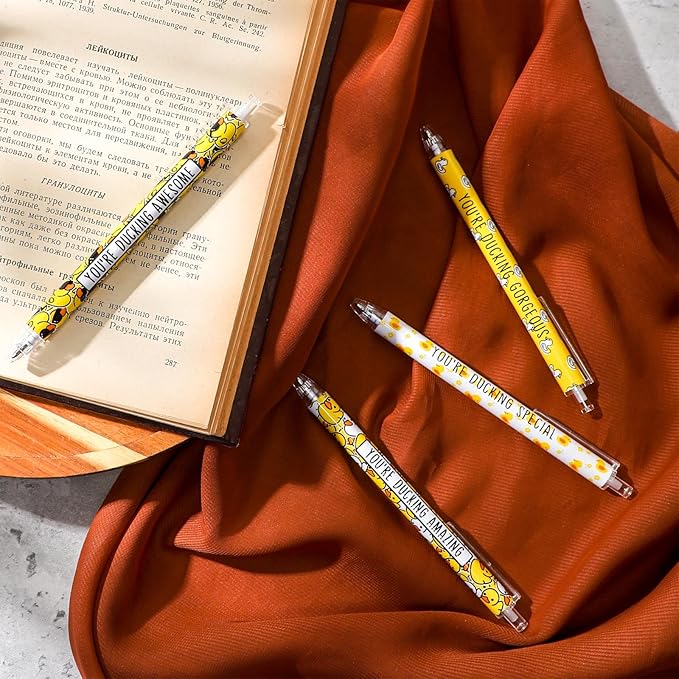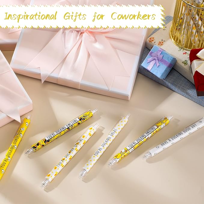 - Cute and Inspirational Gifts: our yellow duck pens are designed in 6 different styles, and each pen is printed with motivational statements and cute yellow duck patterns, bright in colors, unique in styles, which will add a gloss to the desktop and pencil case