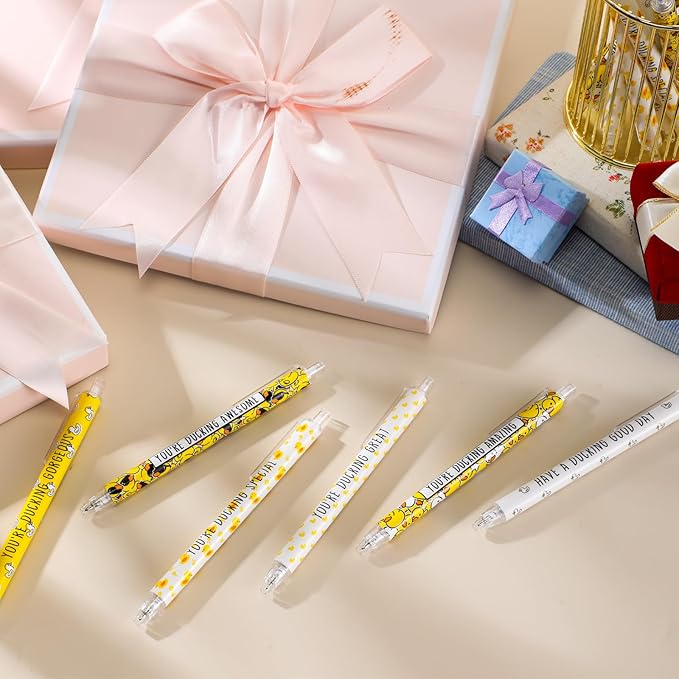 - Cute and Inspirational Gifts: our yellow duck pens are designed in 6 different styles, and each pen is printed with motivational statements and cute yellow duck patterns, bright in colors, unique in styles, which will add a gloss to the desktop and pencil case