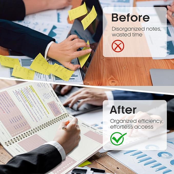 - Versatile Companion for All Meetings - This agenda planner suitable for all professionals and individuals who attend meetings, conferences, and brainstorming sessions, our meeting notebook is a valuable tool for executives, project managers, team leaders, students, and anyone seeking efficient organization and effective note-taking.