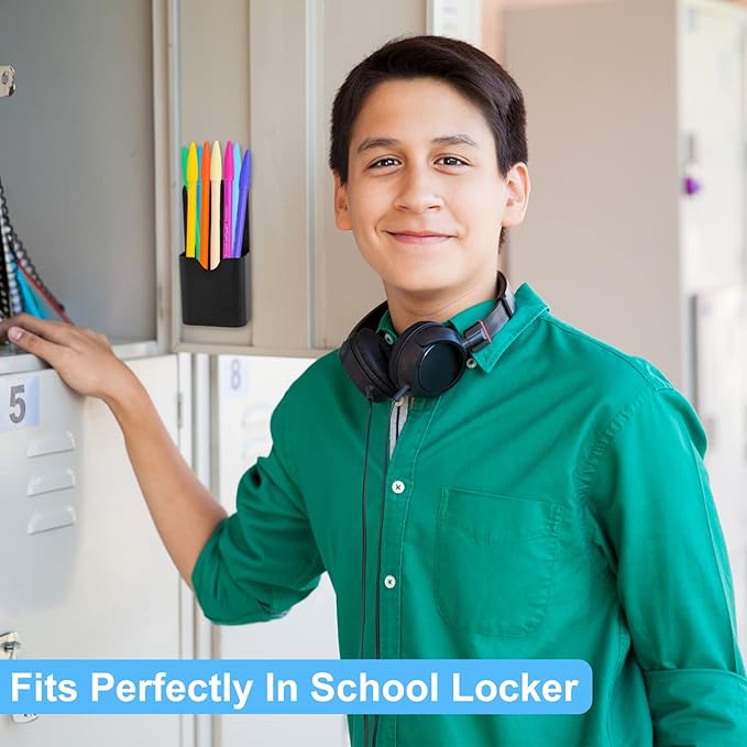 - Simple and Practical:Our magnetic pen holders are suitable for holding pens, pencils, dry erase markers, erasers, rulers, children's scissors and other office, home or school supplies. Also can be served for refrigerator, whiteboard, locker or other metal surfaces.Keep your stuff always organized!
