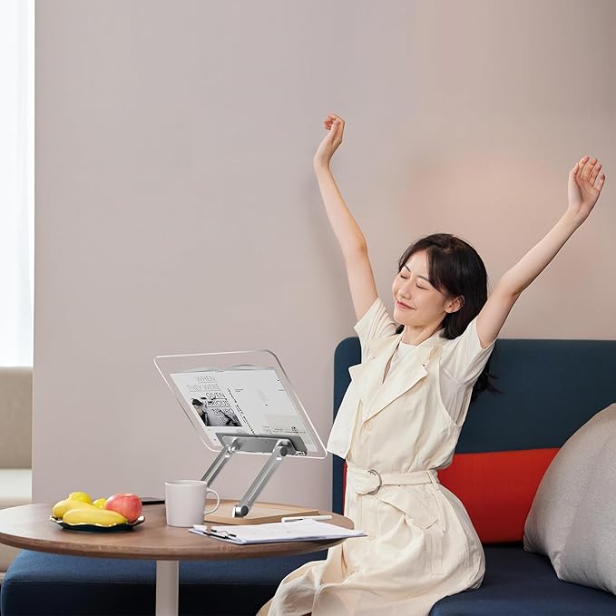 - Adjustable and Stable: Our book holder is adjustable and stable, thanks to its aluminum alloy double-pole support. Easily switch between different usage modes, adjusting the height and angle to suit your needs.