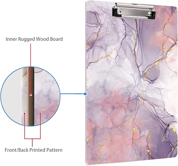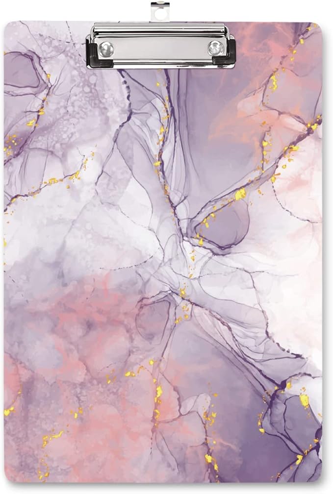 WAVEYU Cute Hardboard Office Clipboard, Clipboard with Low Profile Clip Designed for Students Classroom School and Office Use, Purple Marble(12.5"x9")