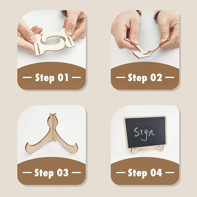 - What You Received: There are 6 pcs wave-shaped boards and 6 pcs rectangle-shape boards, 24 pieces wooden stands, 3 pcs wave-shaped labels and 3 pcs rectangle-shape labels and 1 liquid chalk markers in the package