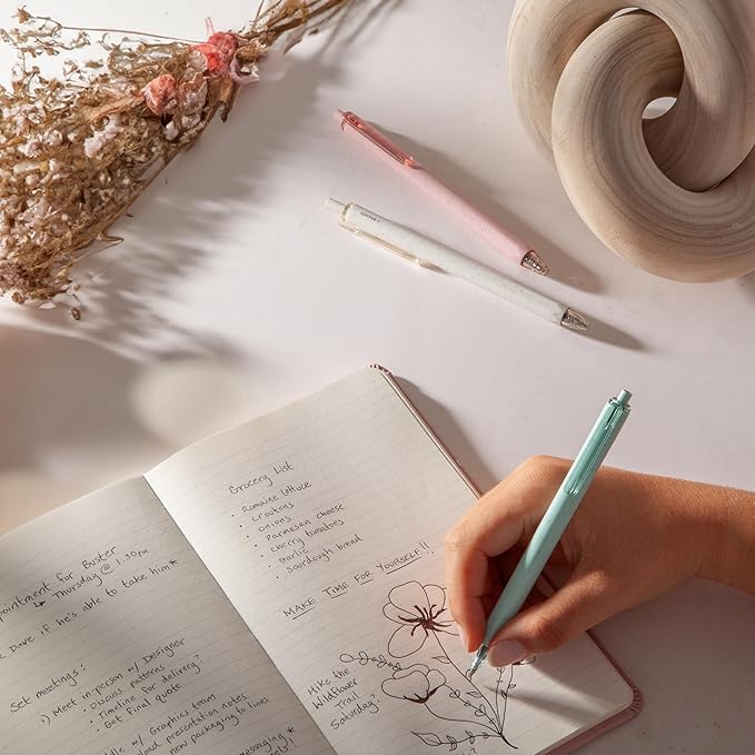 - SOPHISTICATED DESIGN: Constructed from plant-based materials, these chic flair pens feature subdued yet eye-catching hues of sage green, blue, blush pink, and cream