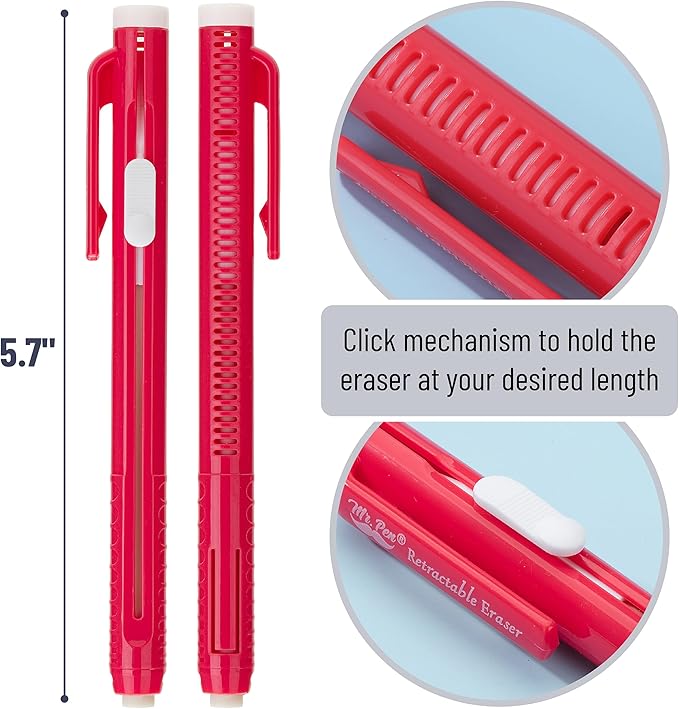 - Mr. Pen retractable mechanical eraser pens are made of quality rubber, which are not only light in weight and flexible but also have fewer rubber crumbs and long service life; you can enjoy a cleaner and tidy desktop.