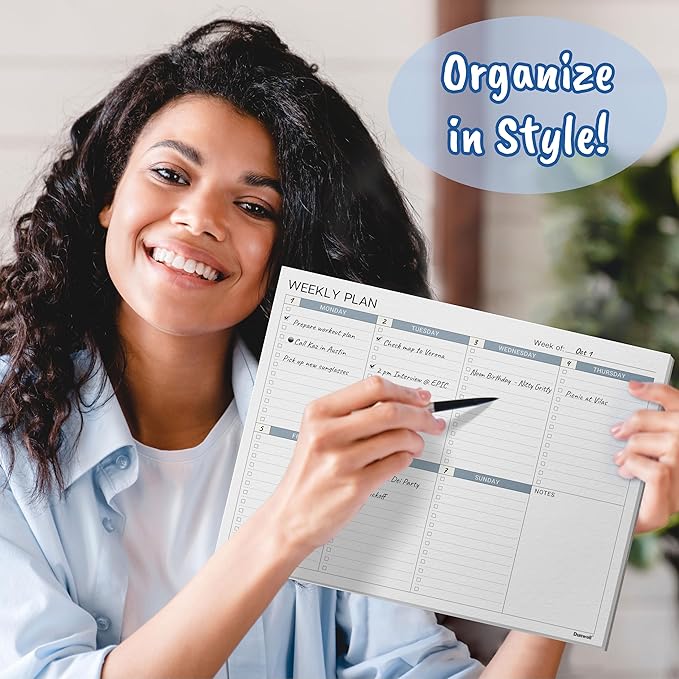 Dunwell Large Weekly Planning Pad, 8.5x11 Weekly To Do List, 54 Letter Size Tear-Off Pages, Undated Weekly Desk Planner Pad, Productivity Planner with 7-Day Checklist, Matching Notepad