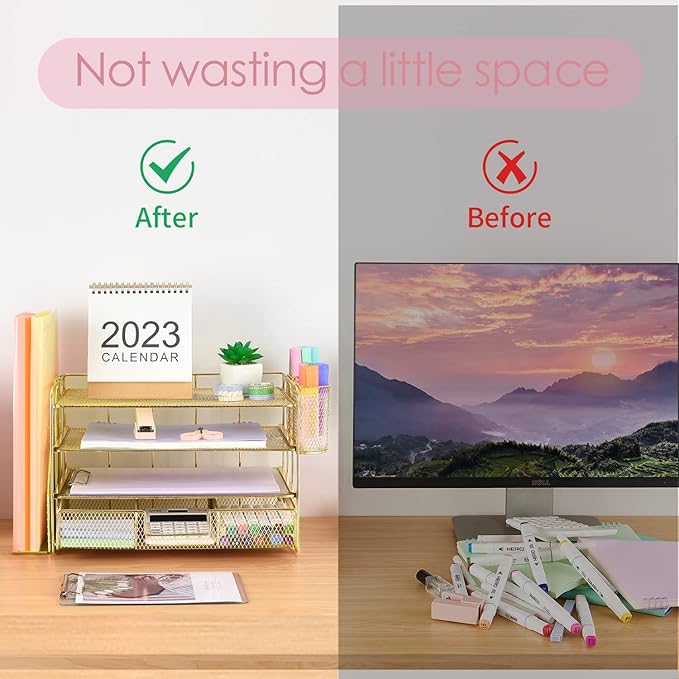 - 🎁【Premium Quality】Crafted from high-quality industrial-strength steel wire mesh and reinforced with a solid steel frame, our desk file organizer is built to last. You can trust that it will withstand the test of time and keep your workspace organized for years to come