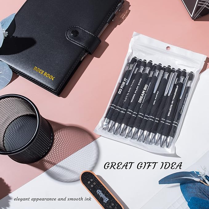 - ❤【Plenty of Pens】You'll receive a set of 12 black touch-screen ballpoint pens, each with a different inspirational quote. With this ample quantity, you'll have enough pens for your daily needs and replacements.