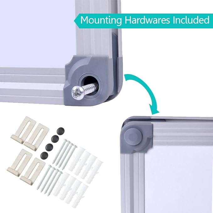 - 【Sturdy Instruction】The aluminum frame give the dry erase board a stylish look; Four ABS plastic corners at the end of the edge, no need to worry about pointy edges. Middle Frame can prevent bubble and bending.