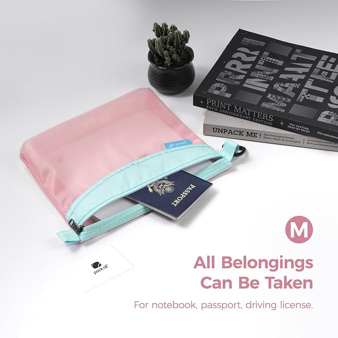 pack all Water-resistant Material Zipper Pouch, Mesh Zipper Bag for Storage, Travel, Office (Medium, Pink)
