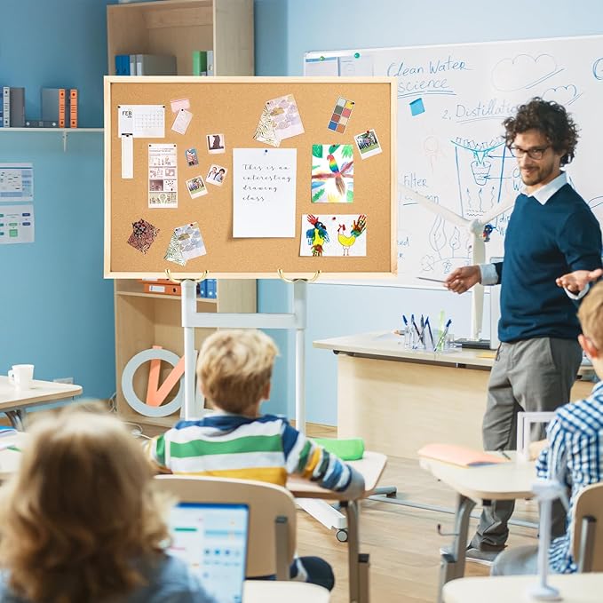 OWLKELA 24'' x 36'' Cork Board Bulletin Board, Wooden Framed Corkboard, Wood Oak Frame Corkboard, Vision Board and Decorative Hanging Pin Board
