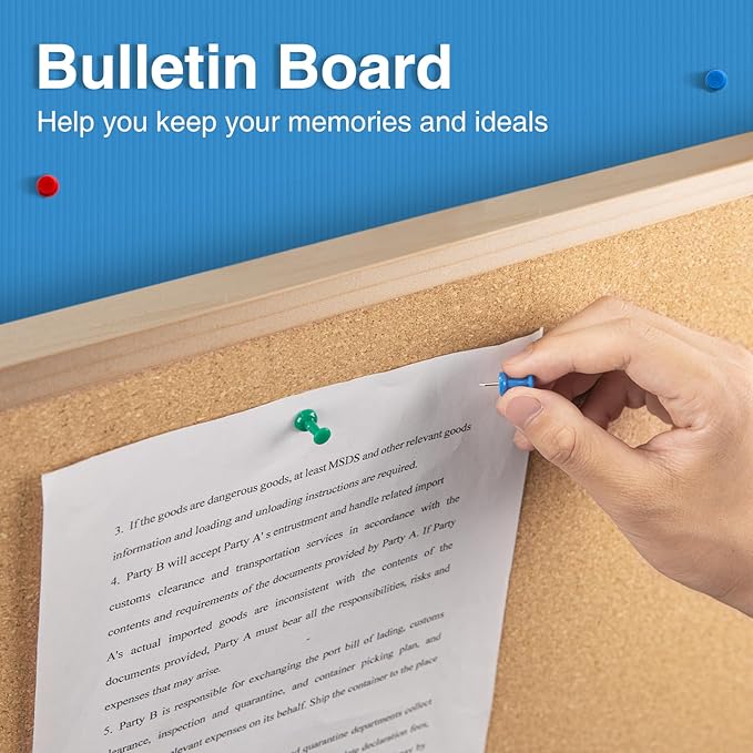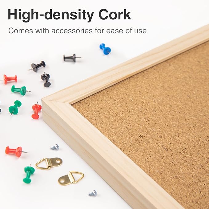 - 【Value Package】Includes 1 pcs 24''x36'' cork board, 20 cork nails, 2 traceless nail hook, 2 screws, 2 eye bolt, 2 hanging loops