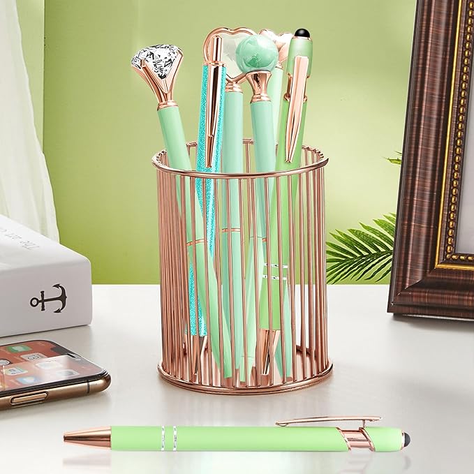 - 【Green Ballpoint Pen Set】 Set of 6 green ballpoint cool pens design for different styles. It includes a diamond pen, a heart shaped diamond pen with crystal, a pearl pen, a heart shaped metal pen, a glitter pen and a stylus pen .The variegated design can satisfy your difference usage scenarios and demands.
