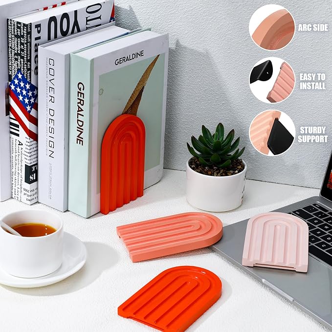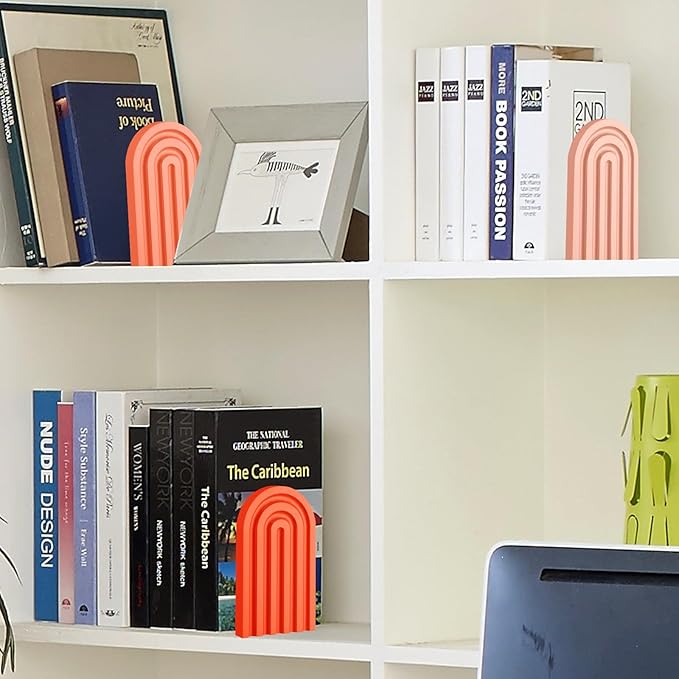 - Bohemian and Minimalist Design: our non-slip bookends are designed with rainbow shapes and 4 beautiful color systems, each with exquisite carvings, which can add elegance, simplicity and natural style to your bookshelf, decorate your office and study room