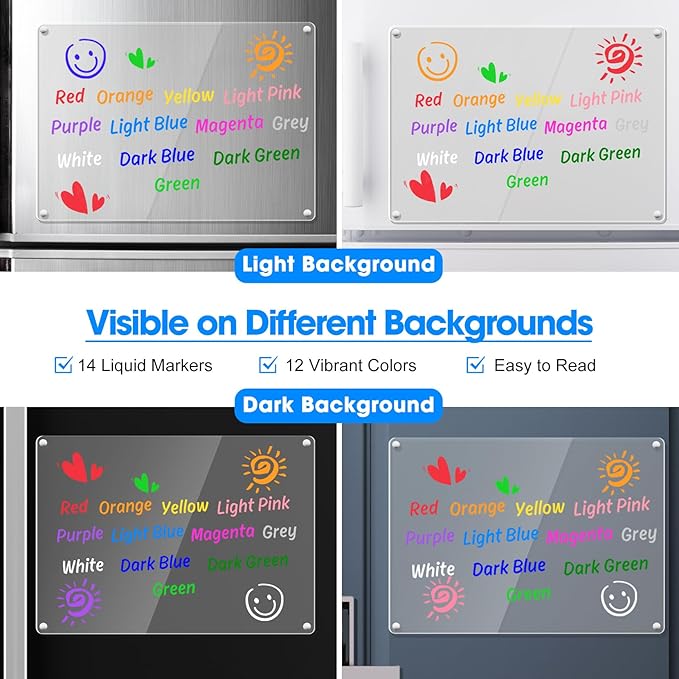 - These Wet Erase Liquid Chalk Markers are specially designed for acrylic dry erase board, acrylic calendar for fridge, clear fridge white board, glass wall calendar or dry erase board. NOTE: the acrylic boards are not included in the package.