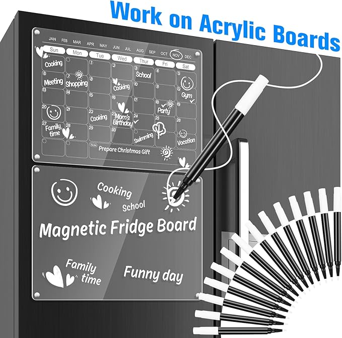 - These White Wet Erase Liquid Chalk Markers are specially designed for acrylic dry erase board, acrylic calendar for fridge, clear fridge white board, glass wall calendar or dry erase board. NOTE: the acrylic boards or glass board are not included in the package. These markers are also great for Halloween/ Christmas/ New Year/ Holidays painting on glass window/door/mirror or any shiny surface.